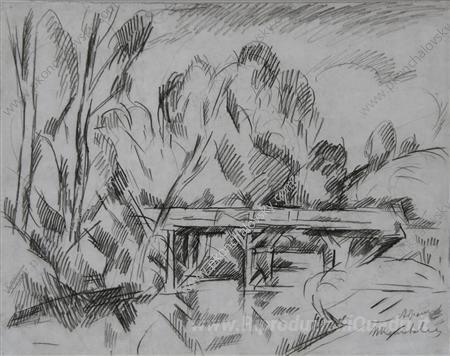 Ti offriamo una riproduzione artigianale su tela dell'opera famosa 'Abramtsevo. Il ponte. Disegno per il dipinto 'Ponte a Abramtsevo' di Pyotr Konchalovsky, dal Museo delle Riproduzioni.