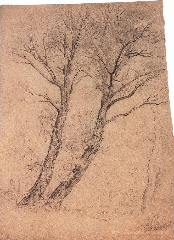 Ti offriamo una riproduzione artigianale su tela dell'opera famosa 'Alberi' di Aleksey Savrasov, dal Museo delle Riproduzioni.