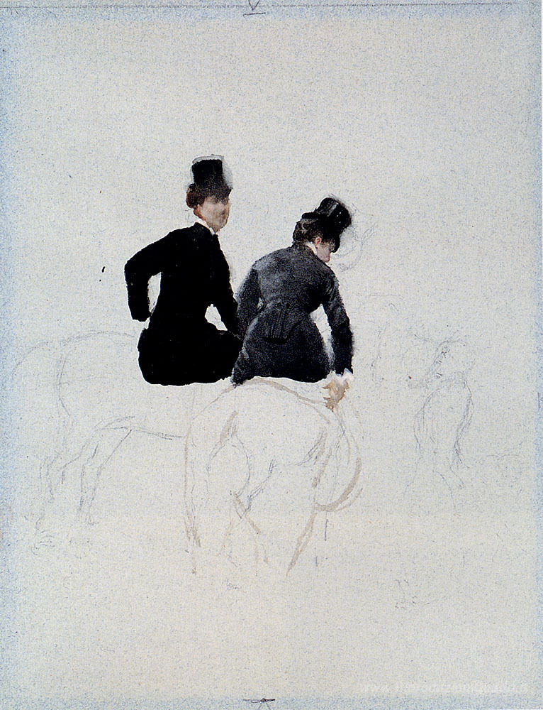 Ti offriamo una riproduzione artigianale su tela dell'opera famosa 'Amazzoni' di Giuseppe de Nittis, dal Museo delle Riproduzioni.