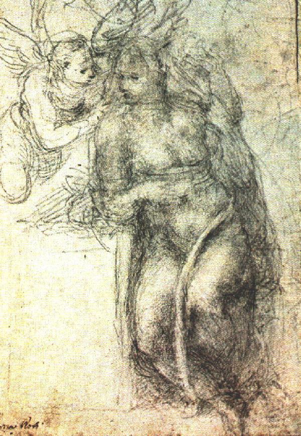 Ti offriamo una riproduzione artigianale su tela dell'opera famosa 'Annunciazione (studio)' di Michelangelo, dal Museo delle Riproduzioni.