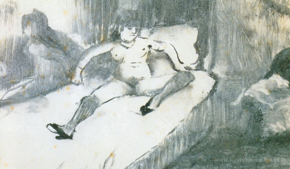 Ti offriamo una riproduzione artigianale su tela dell'opera famosa 'Appoggiare sul letto' di Edgar Degas, dal Museo delle Riproduzioni.