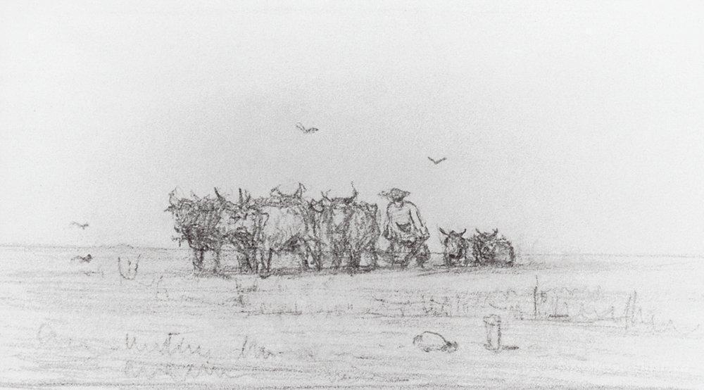 Ti offriamo una riproduzione artigianale su tela dell'opera famosa 'Aratura in buoi' di Arkhip Kuindzhi, dal Museo delle Riproduzioni.