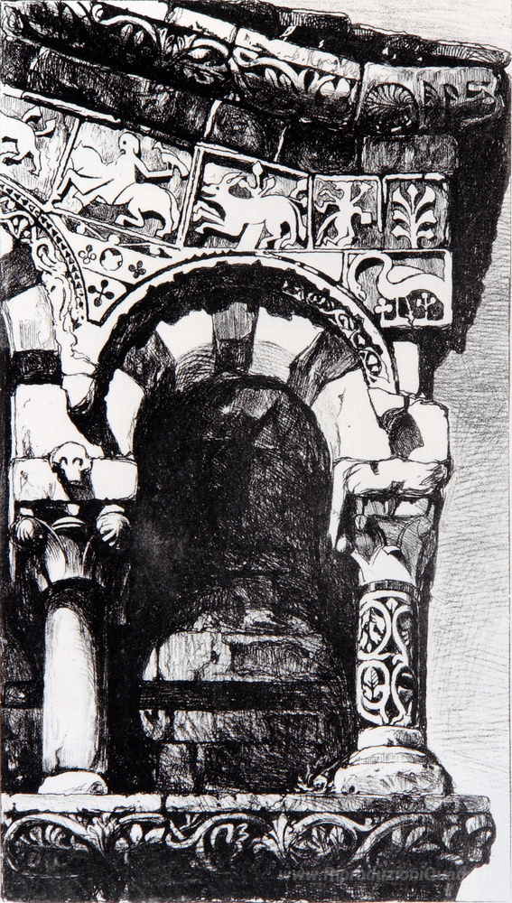 Ti offriamo una riproduzione artigianale su tela dell'opera famosa 'Arch dalla facciata della Chiesa di San Michele' di John Ruskin, dal Museo delle Riproduzioni.