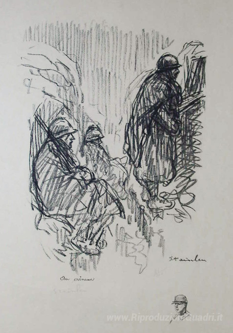 Ti offriamo una riproduzione artigianale su tela dell'opera famosa 'Au Creneau' di Theophile Steinlen, dal Museo delle Riproduzioni.