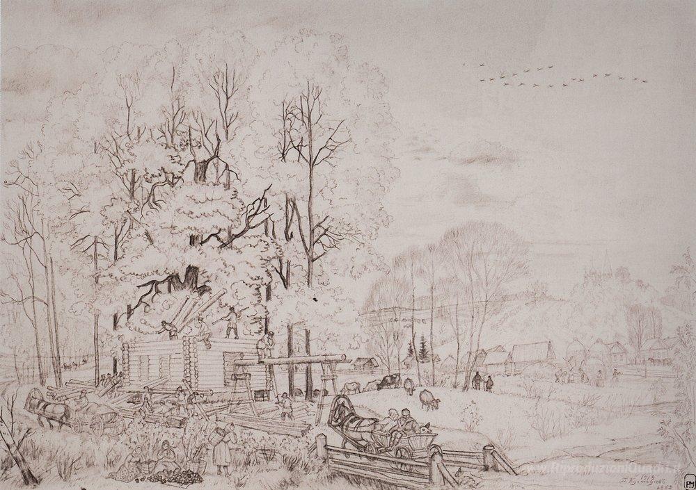 Ti offriamo una riproduzione artigianale su tela dell'opera famosa 'Autunno' di Boris Kustodiev, dal Museo delle Riproduzioni.