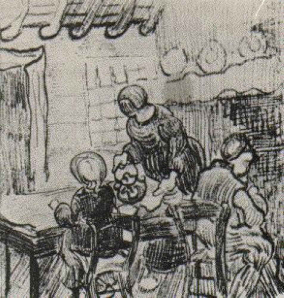 Ti offriamo una riproduzione artigianale su tela dell'opera famosa 'Bambino e donna Caffè di versamento' di Vincent van Gogh, dal Museo delle Riproduzioni.