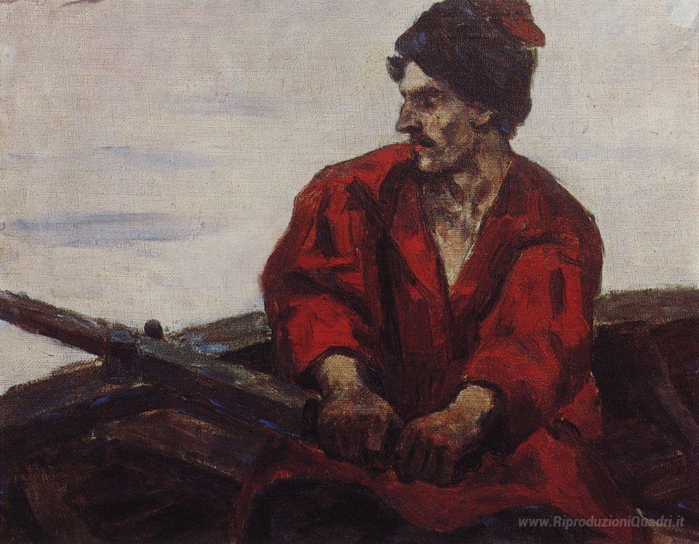 Ti offriamo una riproduzione artigianale su tela dell'opera famosa 'Boatsman' di Vasily Surikov, dal Museo delle Riproduzioni.