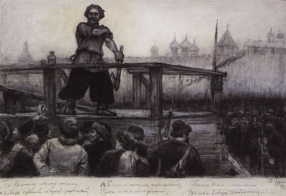 Ti offriamo una riproduzione artigianale su tela dell'opera famosa 'Boia' di Vasily Surikov, dal Museo delle Riproduzioni.