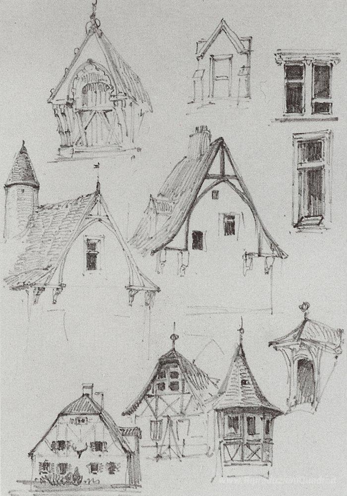 Ti offriamo una riproduzione artigianale su tela dell'opera famosa 'Bozzetti architettonici. Dal viaggio in Germania.' di Vasily Polenov, dal Museo delle Riproduzioni.
