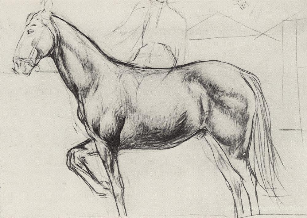 Ti offriamo una riproduzione artigianale su tela dell'opera famosa 'Bozzetto per il dipinto Bagno Red Horse' di Kuzma Petrov-Vodkin, dal Museo delle Riproduzioni.