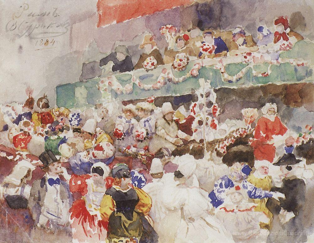 Ti offriamo una riproduzione artigianale su tela dell'opera famosa 'Carnevale Romano' di Vasily Surikov, dal Museo delle Riproduzioni.