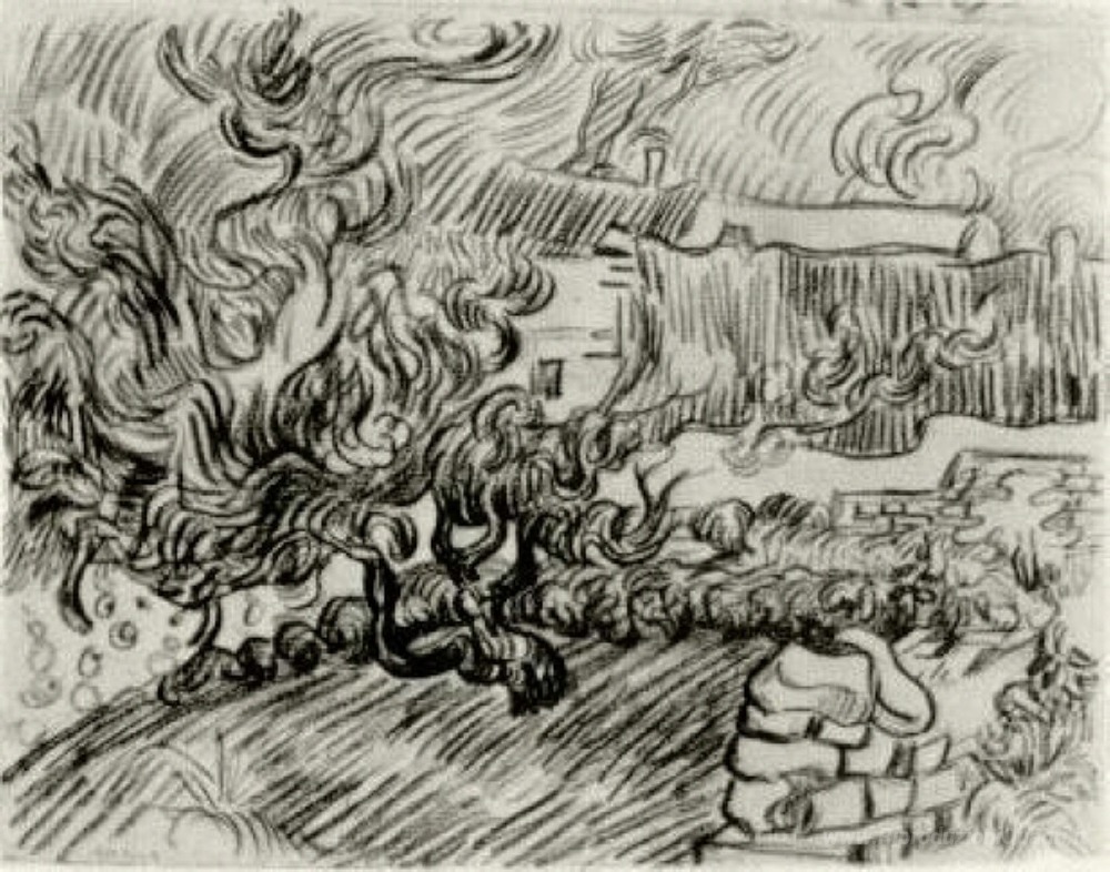 Ti offriamo una riproduzione artigianale su tela dell'opera famosa 'Case tra gli alberi' di Vincent van Gogh, dal Museo delle Riproduzioni.