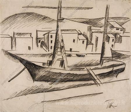 Ti offriamo una riproduzione artigianale su tela dell'opera famosa 'Cassis. La nave.' di Pyotr Konchalovsky, dal Museo delle Riproduzioni.