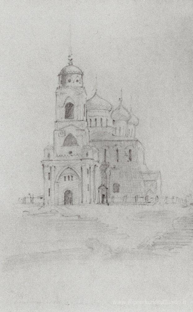 Ti offriamo una riproduzione artigianale su tela dell'opera famosa 'Cattedrale dell'Assunzione a Vladimir' di Vasily Polenov, dal Museo delle Riproduzioni.