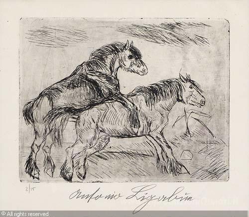 Ti offriamo una riproduzione artigianale su tela dell'opera famosa 'Cavalli' di Antonio Ligabue, dal Museo delle Riproduzioni.