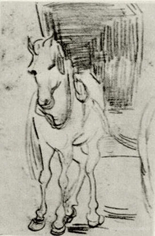 Ti offriamo una riproduzione artigianale su tela dell'opera famosa 'Cavallo e carrello' di Vincent van Gogh, dal Museo delle Riproduzioni.