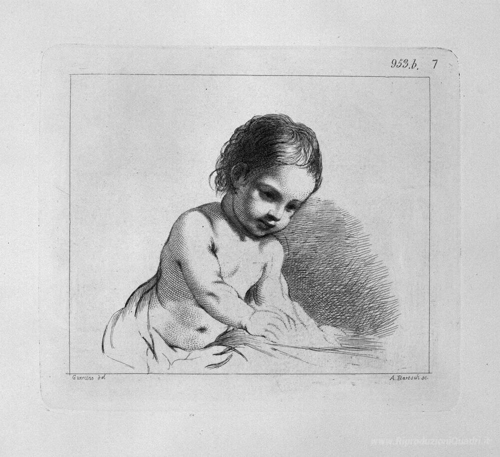 Ti offriamo una riproduzione artigianale su tela dell'opera famosa 'Cherubino, mezza lunghezza, del Guercino' di Giovanni Battista Piranesi, dal Museo delle Riproduzioni.