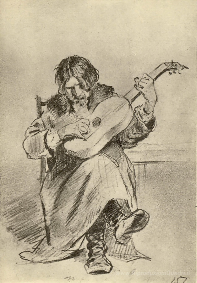Ti offriamo una riproduzione artigianale su tela dell'opera famosa 'Chitarrista-bach' di Vasily Perov, dal Museo delle Riproduzioni.
