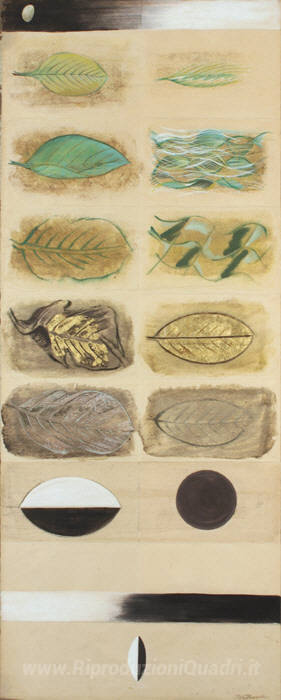 Ti offriamo una riproduzione artigianale su tela dell'opera famosa 'Ciclo di vita di una foglia' di Morris Graves, dal Museo delle Riproduzioni.