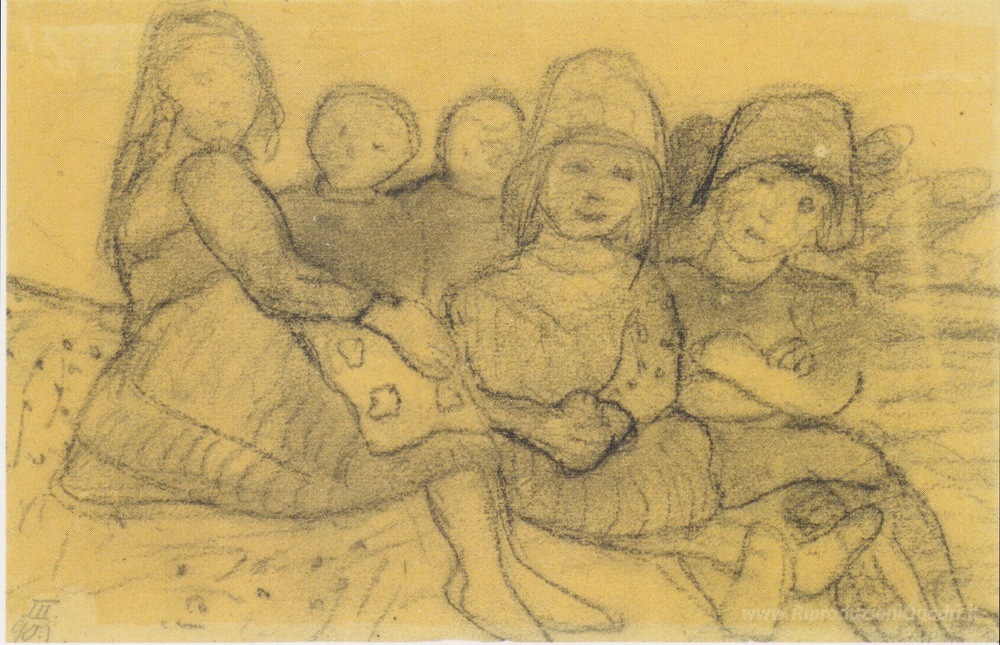 Ti offriamo una riproduzione artigianale su tela dell'opera famosa 'Cinque bambini sul bordo del prato' di Paula Modersohn-Becker, dal Museo delle Riproduzioni.