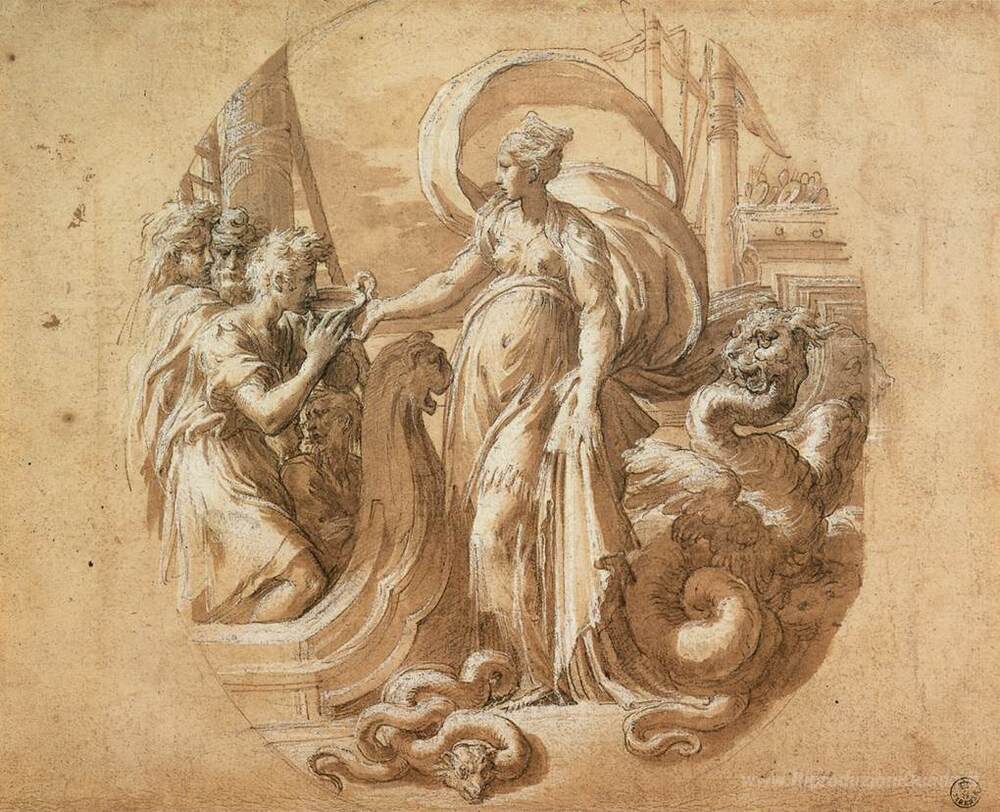 Immergetevi nel meraviglioso mondo del Parmigianino, uno dei maestri indiscussi del Rinascimento italiano. Il suo dipinto Circe ed i Compagni di Ulisse è un capolavoro che incarna la magia e la complessità delle emozioni umane, rappresentando la leggendaria figura di Circe mentre incanta i marinai con i suoi poteri. Ogni dettaglio, dalle delicate sfumature alle pose eleganti dei personaggi, è frutto di una maestria tecnica straordinaria, che rende omaggio alla tradizione pittorica italiana.