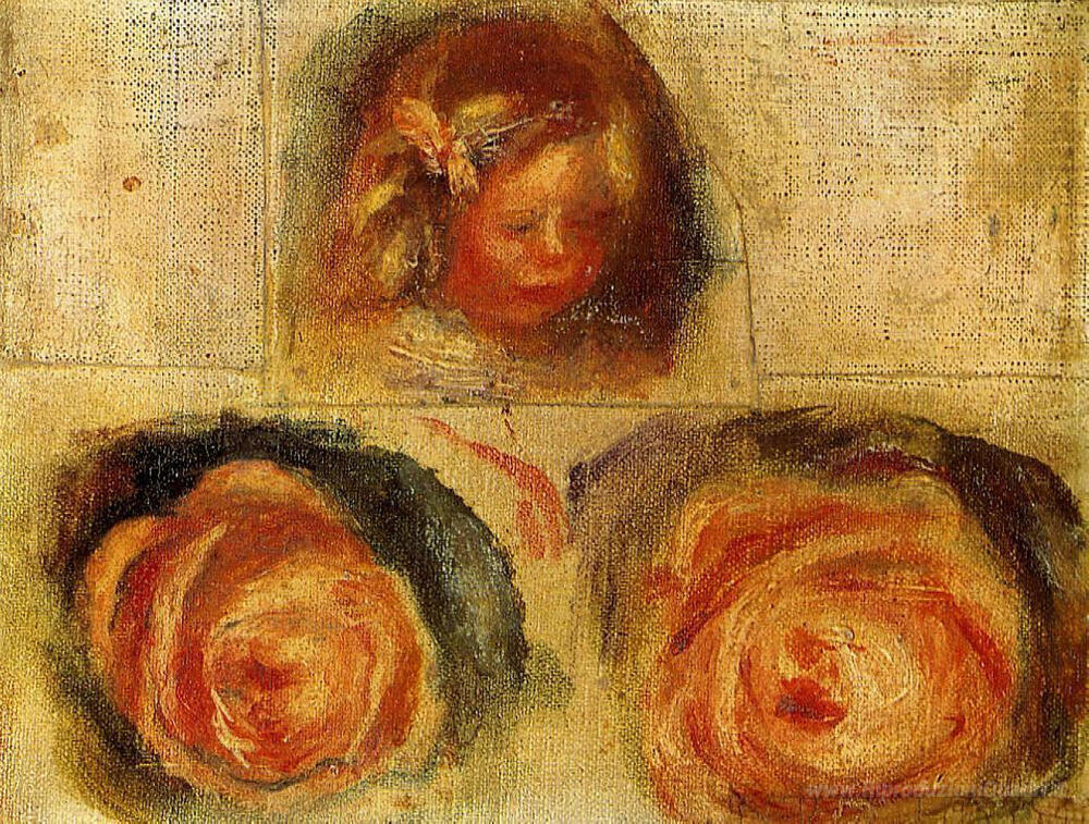 Ti offriamo una riproduzione artigianale su tela dell'opera famosa 'Coco e Roses (studio)' di Pierre-Auguste Renoir, dal Museo delle Riproduzioni.