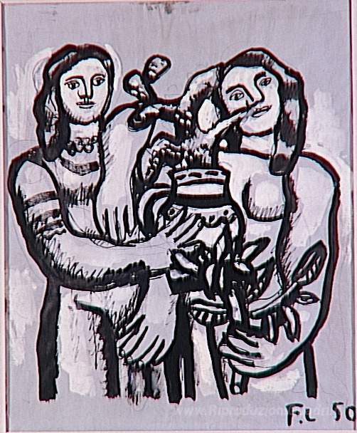 Ti offriamo una riproduzione artigianale su tela dell'opera famosa 'Compleanno, due donne' di Fernand Leger, dal Museo delle Riproduzioni.