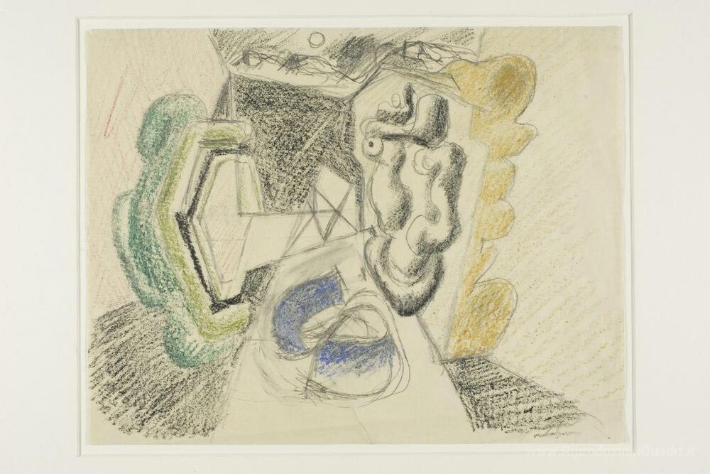Ti offriamo una riproduzione artigianale su tela dell'opera famosa 'Composizione astratta / Figure in un paesaggio' di Le Corbusier, dal Museo delle Riproduzioni.
