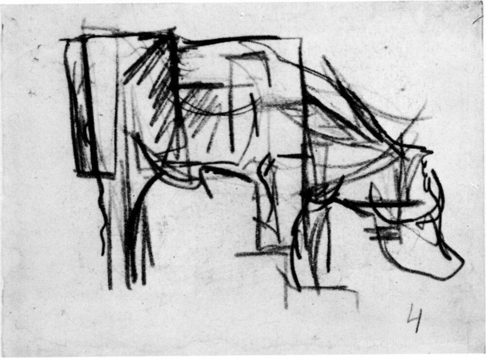 Ti offriamo una riproduzione artigianale su tela dell'opera famosa 'Composizione (la mucca)' di Theo van Doesburg, dal Museo delle Riproduzioni.