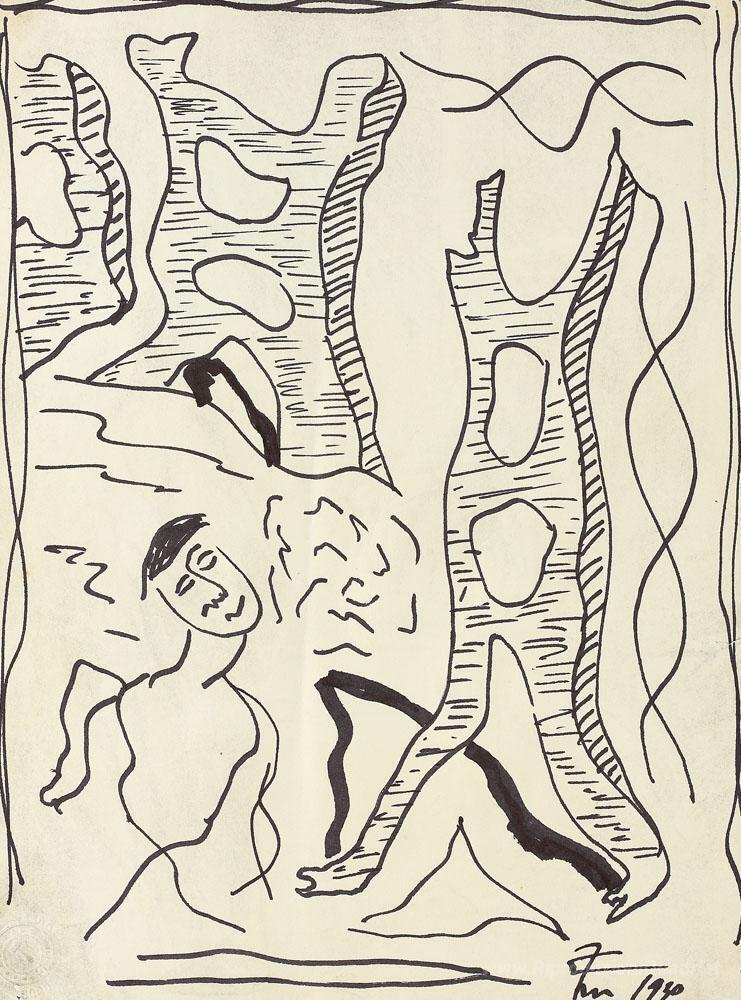 Ti offriamo una riproduzione artigianale su tela dell'opera famosa 'Composizione' di Corneliu Michailescu, dal Museo delle Riproduzioni.