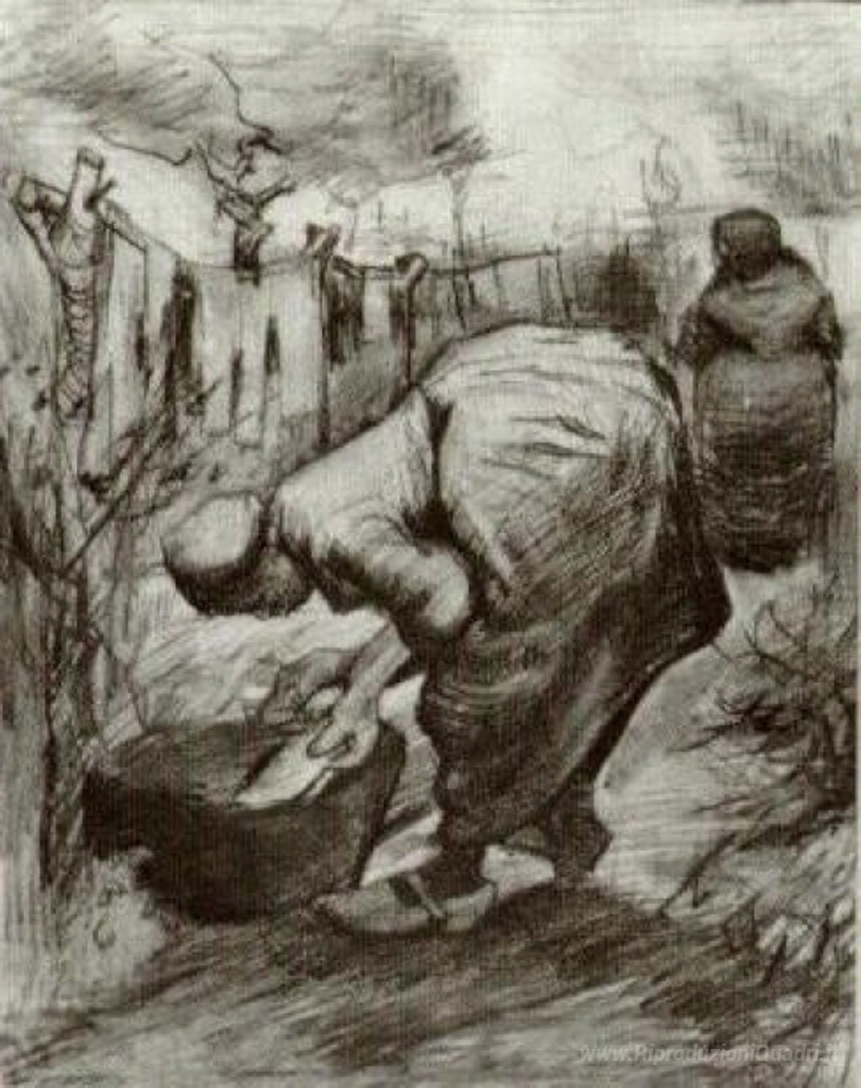 Ti offriamo una riproduzione artigianale su tela dell'opera famosa 'Contadina al lavatoio e Contadina riagganciare il lavanderia' di Vincent van Gogh, dal Museo delle Riproduzioni.