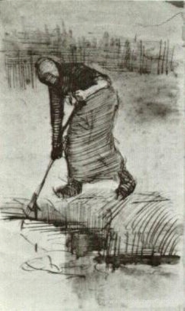 Ti offriamo una riproduzione artigianale su tela dell'opera famosa 'Contadina, in piedi vicino a un fosso o piscina' di Vincent van Gogh, dal Museo delle Riproduzioni.