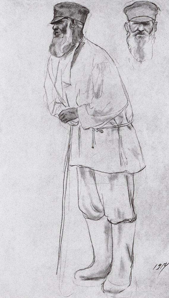 Ti offriamo una riproduzione artigianale su tela dell'opera famosa 'Contadino' di Boris Kustodiev, dal Museo delle Riproduzioni.