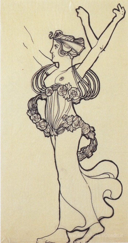 Ti offriamo una riproduzione artigianale su tela dell'opera famosa 'Corona portatore. Design per facciata decorativa della Secession' di Koloman Moser, dal Museo delle Riproduzioni.