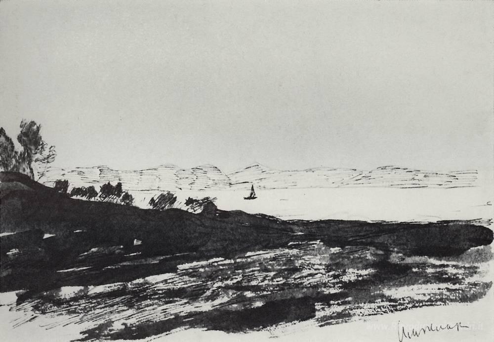 Ti offriamo una riproduzione artigianale su tela dell'opera famosa 'Costa della laguna' di Isaac Levitan, dal Museo delle Riproduzioni.