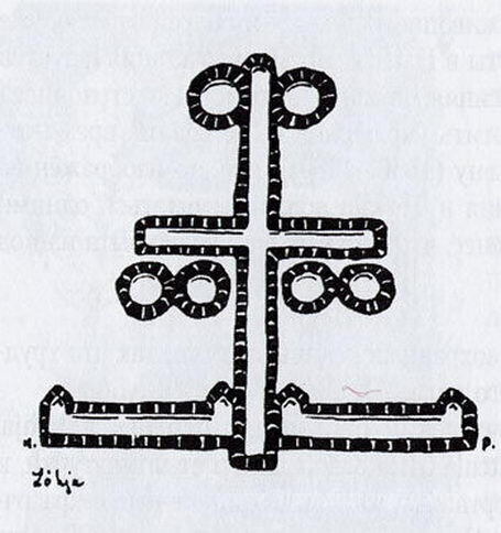 Ti offriamo una riproduzione artigianale su tela dell'opera famosa 'Croce simbolica sulla parete esterna in Lohia' di Nicholas Roerich, dal Museo delle Riproduzioni.