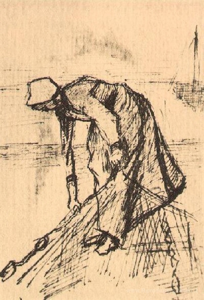 Ti offriamo una riproduzione artigianale su tela dell'opera famosa 'Curvo Donna con Net' di Vincent van Gogh, dal Museo delle Riproduzioni.