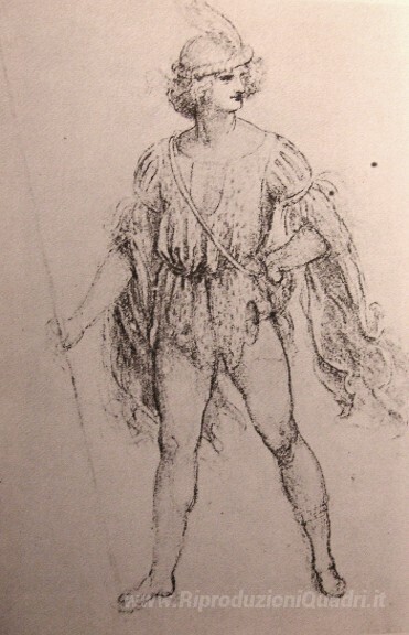 Ti offriamo una riproduzione artigianale su tela dell'opera famosa 'Disegno di un costume in maschera' di Leonardo da Vinci, dal Museo delle Riproduzioni.