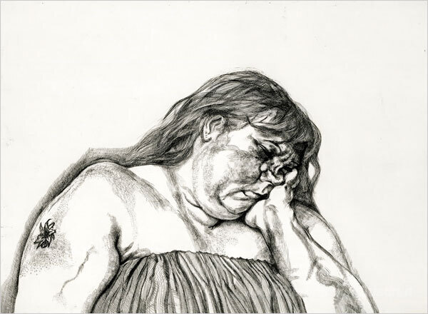 Ti offriamo una riproduzione artigianale su tela dell'opera famosa 'Donna con un tatuaggio del braccio' di Lucian Freud, dal Museo delle Riproduzioni.