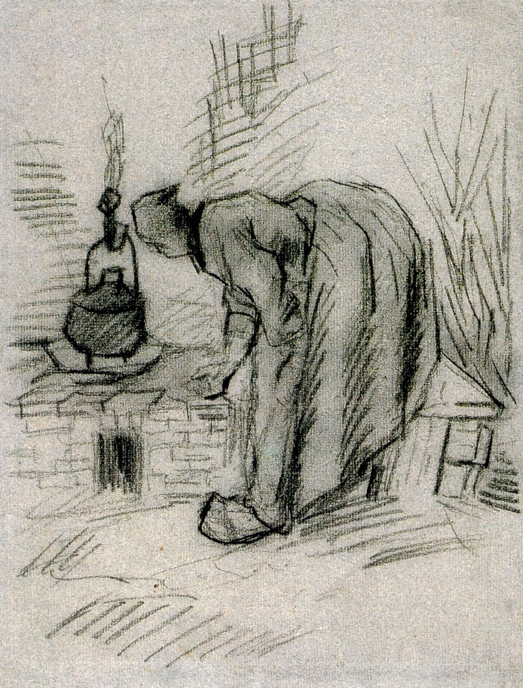 Ti offriamo una riproduzione artigianale su tela dell'opera famosa 'Donna da una Hearth' di Vincent van Gogh, dal Museo delle Riproduzioni.