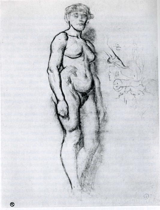 Ti offriamo una riproduzione artigianale su tela dell'opera famosa 'Donna in piedi nel profilo di semi' di Henri de Toulouse-Lautrec, dal Museo delle Riproduzioni.