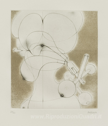L'opera, con il suo stile evocativo e le sue simboliche iconografiche, arricchisce l'atmosfera di ogni spazio, dal living alla camera da letto, rendendo ogni ambiente unico e affascinante. Un pezzo da non perdere per gli amanti dell'arte che desiderano trasformare la propria casa in una galleria personale. Lasciati ispirare dalla visione artistica di Bellmer e fai un passo verso l'arte che emoziona e coinvolge.