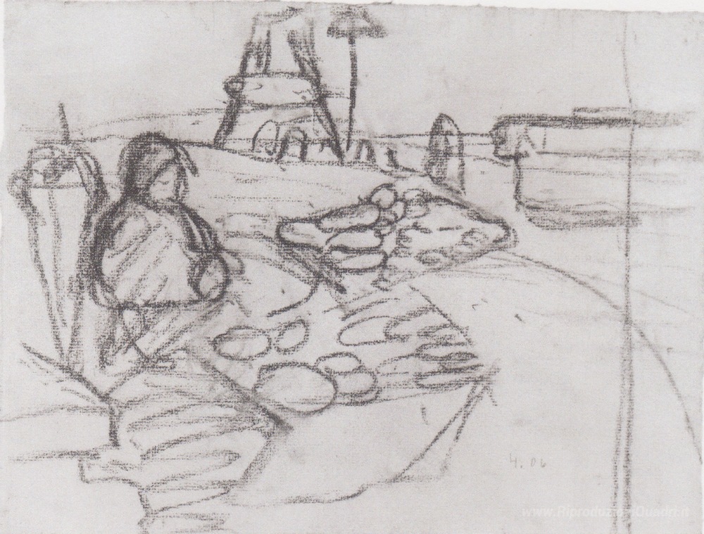 Ti offriamo una riproduzione artigianale su tela dell'opera famosa 'Donna seduta in bancarelle del mercato' di Paula Modersohn-Becker, dal Museo delle Riproduzioni.