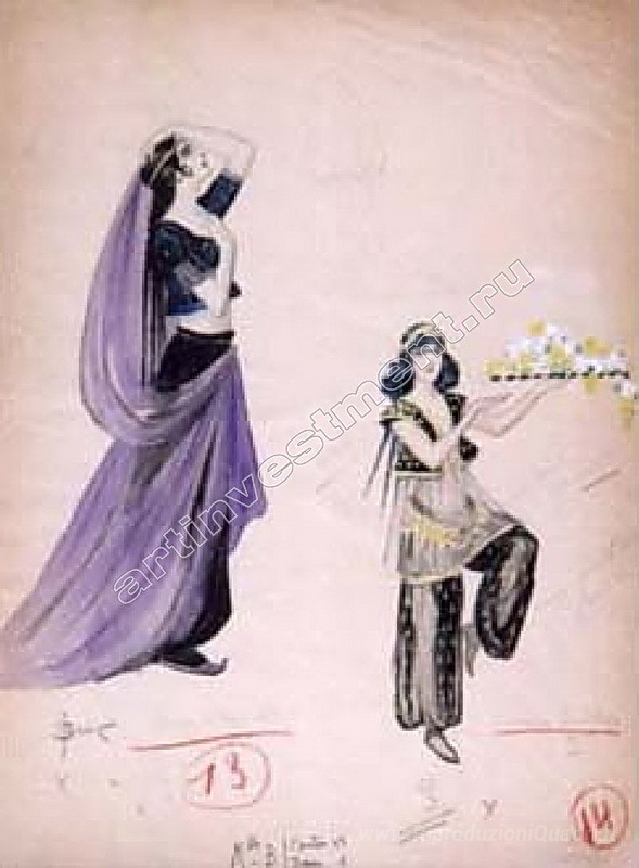 Ti offriamo una riproduzione artigianale su tela dell'opera famosa 'Due bozzetti di costumi' di Sergey Solomko, dal Museo delle Riproduzioni.
