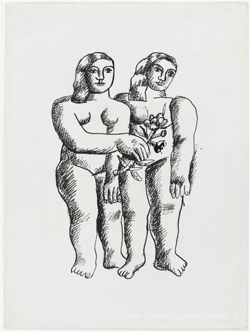 Ti offriamo una riproduzione artigianale su tela dell'opera famosa 'Due donne (due sorelle)' di Fernand Leger, dal Museo delle Riproduzioni.