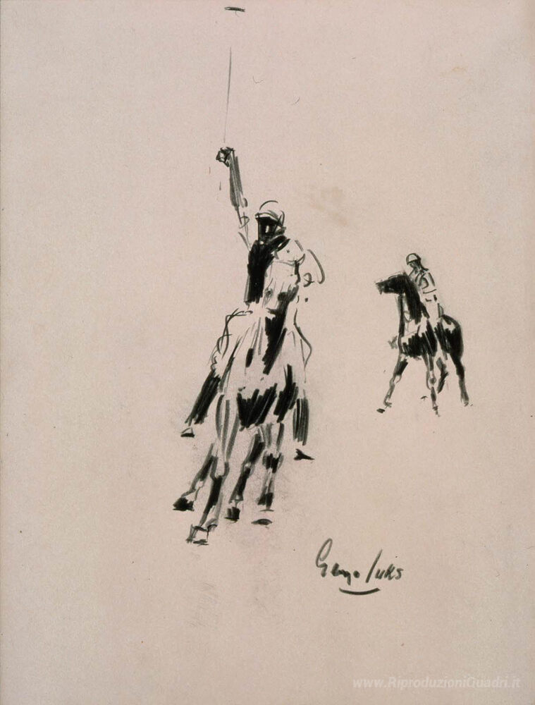 Ti offriamo una riproduzione artigianale su tela dell'opera famosa 'Due giocatori di polo' di George Luks, dal Museo delle Riproduzioni.