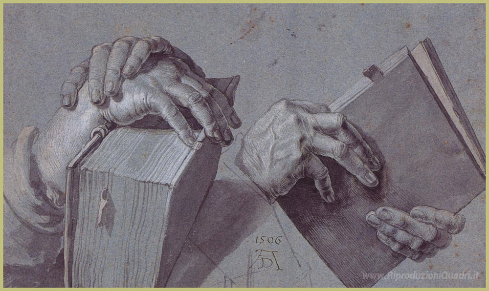 Ti offriamo una riproduzione artigianale su tela dell'opera famosa 'Due mani che tengono Un Paio Di Libri' di Albrecht Durer, dal Museo delle Riproduzioni.