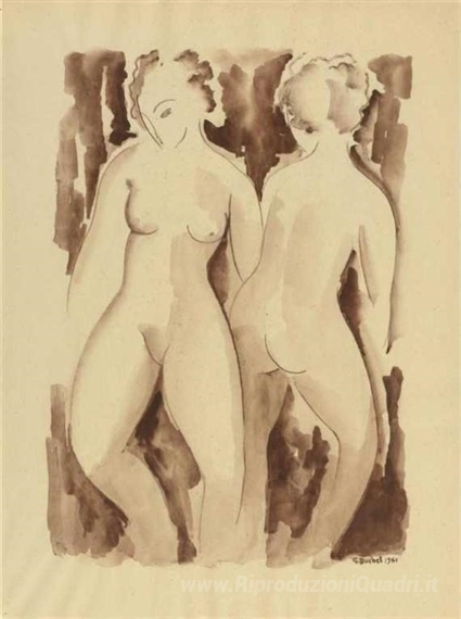 Ti offriamo una riproduzione artigianale su tela dell'opera famosa 'Due nudi femminili' di Gustave Buchet, dal Museo delle Riproduzioni.