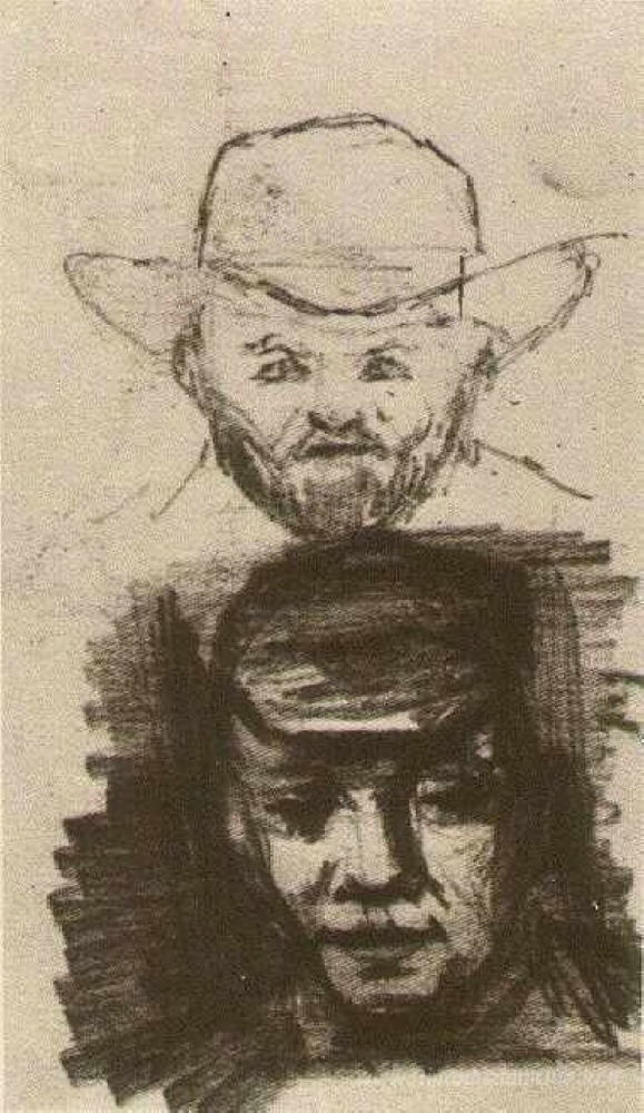 Ti offriamo una riproduzione artigianale su tela dell'opera famosa 'Due teste dell'uomo con la barba e il cappello contadino con la ' di Vincent van Gogh, dal Museo delle Riproduzioni.