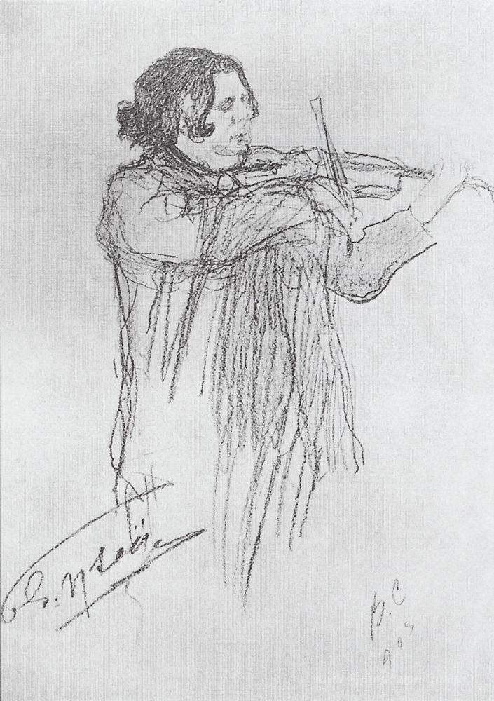 Ti offriamo una riproduzione artigianale su tela dell'opera famosa 'Eugène Ysa?e' di Valentin Serov, dal Museo delle Riproduzioni.